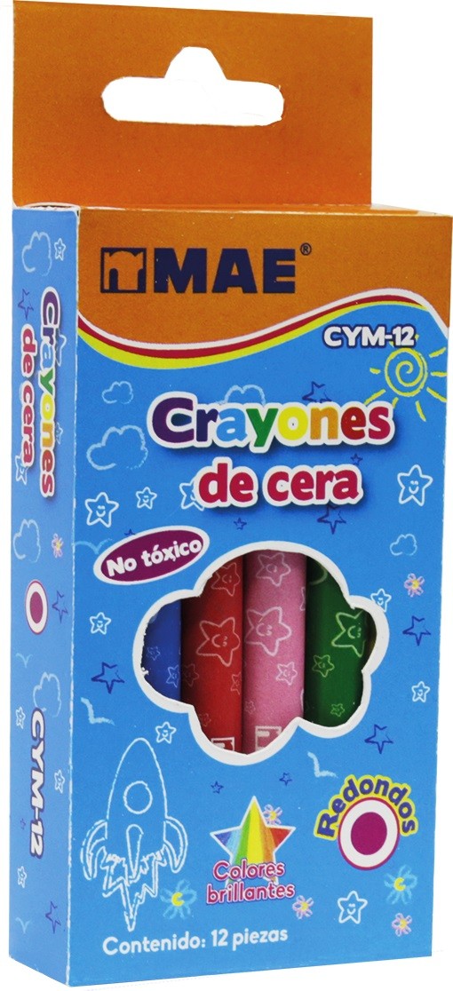 CRAYON DE CERA, DELGADO, ESCOLAR REDONDO, CAJA CON 12 COLORES, NO TOXICO, MODELO CYM-12