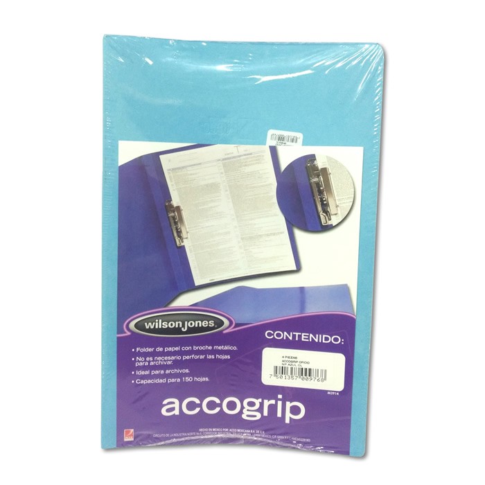 FOLDER TAMAÑO OFICIO EN CARTULINA DE 326 GRAMOS CON PALANCA CAPACIDAD DE ARCHIVO HASTA 150 HOJAS MEDIDAS 24 X 37 CMS MODELO P0976 COLOR AZUL CLARO ACCOGRIP